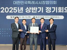화성특례시가 12일 전곡항 마리나클럽하우스에서 열린 ‘대한민국특례시시장협의회 2025년 상반기 정기회의’에서 정명근 화성특례시장이 신임 대표회장으로 선출됐다고 밝혔다. 임기는 2026년 6월 30일까지