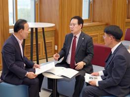 충북 괴산군은 지난 14일 오후 정부 예산 확보를 위해 국회를 방문했다고 밝혔다.송인헌 군수는 이날 안규백, 한기호, 박덕흠 의원 등 국회 국방위원회 및 예산결산특별위원회 소속 의원들과 잇따라 면담했