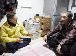 9일 경기도 전역에 한파특보가 발효된 가운데 김동연 경기도지사가 수원시 팔달구 행궁동 주거취약세대(쪽방촌)를 찾아 신속한 난방비 지원을 약속했다.김동연 지사는 60대 남성이 거주하는 두 세대를 방문