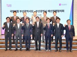 부산시는 오늘(7일) 오전 8시 서울 여의도에서 내년도 국비 확보와 주요 시정 현안 해결 방안 논의를 위해 '국민의힘 부산시당과의 예산정책협의회'를 개최했다고 밝혔다. 회의에는 박형준 시장, 박수영 국