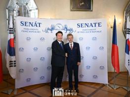 체코를 공식 방문 중인 윤석열 대통령은 오늘(현지시간 9. 20, 금) 체코 상원의사당에서 ?밀로쉬 비스트르칠(Milo? Vystr?il)? 상원의장을 접견했다.대통령은 한국과 체코가 1990년 수교 이래 긴밀한 우호