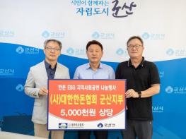 3일 (사)대한한돈협회 군산지부가 추석을 맞아 어려운 이웃 및 사회복지시설 · 단체에 전해달라며 한돈 500만원 상당을 군산시에 기탁했다. (사)대한한돈협회 군산지부는 군산시 돼지사육 20여 농가로 구성