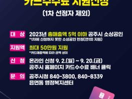 공주시는 민선8기 공약사업으로 물가 상승 등 경영환경 변화로 어려움을 겪는 소상공인의 부담을 덜어 주기 위해 지난해부터 카드수수료를 지원하고 있다. 2일 시에 따르면, 지난해는 3억원 이하 카드가맹점