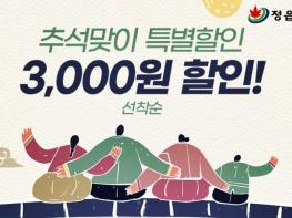 정읍시가 운영하는 공공배달앱 ‘위메프오’가 추석을 맞아 풍성한 할인 이벤트를 진행한다. 먼저 오는 9월 13일부터 18일까지 6일 동안 매일 선착순 300명에게 1만 5000원 이상 주문 시 3000원 할인 쿠폰을