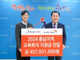 충남교육청은 10월 31일 도교육청에서 월드비전 대전?세종?충남 사업본부와 우리 지역 학생들의 꿈과 노력을 응원하며, 위기에 처한 가정을 돕기 위한 2024년 월드비전 대전?세종?충남 사업본부 교육복지 지