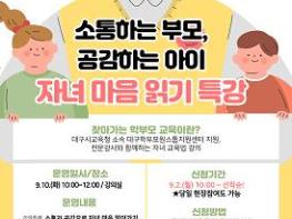녀를 둔 학부모를 대상으로 ‘소통하는 부모, 공감하는 아이’ 자녀 마음 읽기 특강을 개최한다. 이번 특강은 대구학부모원스톱지원센터 주관 2024 찾아가는 학부모교육 ‘손안의 학부모교실’프로그램의
