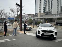어둠이 깔리기 시작한 서산 호수공원과 인근 골목길, 놀이터. 멀리서도 눈에 띄는 '분홍색 조끼'가 나타나자 하굣길 학생들의 얼굴에 환한 미소가 번진다. "안녕하세요!", "오늘도 고생하십니다!" 아이들