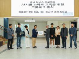 충남교육청은 구글포에듀케이션, 한국레노버, 호서대학교와 함께 충남 도내 학교의 인공지능(AI) 기반 스마트 교육 환경 조성을 위한 인프라 기증식을 16일 홍성 홍북중학교와 17일 아산 한들물빛초등학교를
