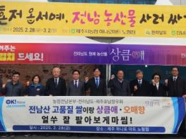 전라남도는 농협전남본부-제주호남향우회와 함께 2일까지 3일간 제주노형점 하나로마트에서 전남산 고품질 쌀 및 농특산물 소비촉진을 위한 판촉행사를 개최한다.전남도에서 생산된 고품질 쌀, 김치, 상큼애
