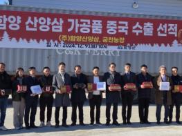 산림청은 함양 산양삼이 중국 수출길에 올랐다고 9일 밝혔다. 산림청은 이날 경상남도 함양군에서 진병영 함양군수를 비롯해 이종상 함양산양삼 대표, 함양군 수출협회 관계자 등 20여 명과 함께 함양 산양