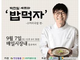 영암군이 7일 오후 6시 30분부터 영암읍 매일시장 거리에서 대표 먹거리 개발 요리 콘서트 ‘박찬일 셰프와 밥먹자’를 개최한다.이날 요리 콘서트는 지역 상권 활성화, 음식거리 조성 등을 위한 행사로, 박