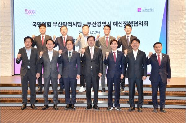 부산시는 오늘(7일) 오전 8시 서울 여의도에서 내년도 국비 확보와 주요 시정 현안 해결 방안 논의를 위해 '국민의힘 부산시당과의 예산정책협의회'를 개최했다고 밝혔다.