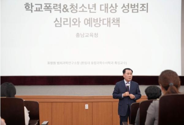 충남교육청은 11월 7일 충남교육청교육연수원 대강당에서 ‘학교폭력 예방 및 대응과 교육공동체의 역할’을 주제로 특별강연을 열었다고 밝혔다.