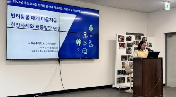 충남교육청은 11월 8일 공주대학교 예산캠퍼스에서 충남형 반려동물 매개치유 정책연구 최종발표회를 개최했다. 이번 발표회는 반려동물을 통한 학생 맞춤형 치유 프로그램이 정서적 위기를 겪는 학생들의 심리·정서 지원에 어떤 효과를 미칠 수 있는지를 분석하고, 학교 현장에 적용할 수 있는 실질적 방안을 논의하는 자리로 마련됐다.
