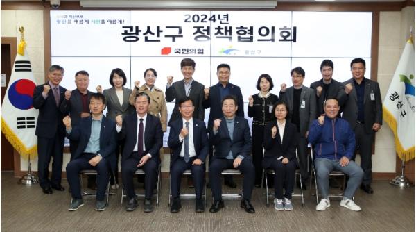 광주 광산구가 12일 구청 2층 상황실에서 국민의힘 광산갑·을 당원협의회와 ‘2024년 정책협의회’를 진행했다.