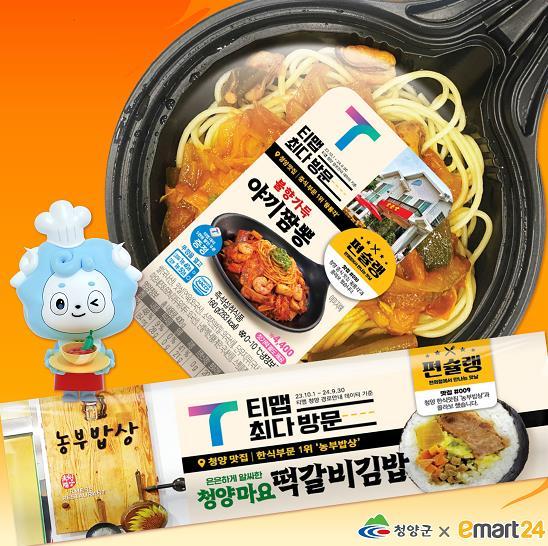 청양군은 오는 19일부터 티맵에서 인증하는 중식 맛집 ‘황룡각’과 한식 맛집 ‘농부밥상’의 인기 메뉴를 재탄생시켜 이마트24에서 출시한다고 밝혔다.