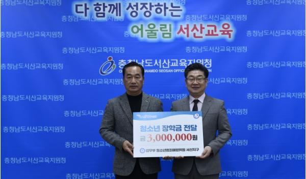 서산교육지원청은 26일 서산교육지원청 중회의실에서 법무부 청소년범죄예방위원 서산지구로부터 300만 원의 장학금을 기탁받았다.