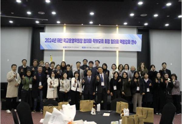 충청남도태안교육지원청은 27일 서산 베니키아 호텔에서 ‘2024년 태안 학교운영위원회 위원장 협의회 · 학부모회 회장 협의회 역량강화 연수’를 실시했다.