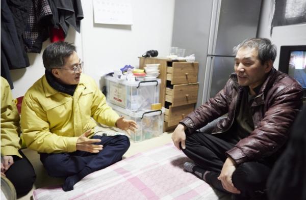 9일 경기도 전역에 한파특보가 발효된 가운데 김동연 경기도지사가 수원시 팔달구 행궁동 주거취약세대(쪽방촌)를 찾아 신속한 난방비 지원을 약속했다.