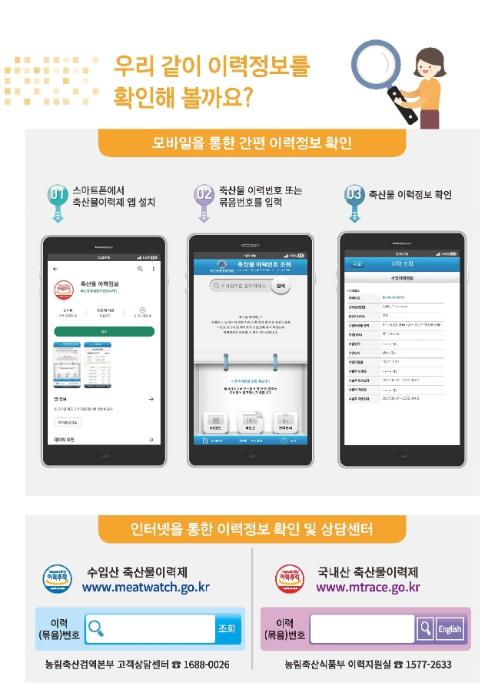 소비자는 수입 쇠고기, 돼지고기인지 여부를 수입축산물이력관리시스템에서 직접 제품의 원산지 정보, 수입 이력, 유통경로 등을 직접 확인할 수 있다. 또한 2회 이상 상습 위반업체(소)는 공표하고 있으므로 수입축산물이력관리시스템에서 볼 수 있으며, 자세한 내용을 수입축산물이력관리시스템 또는 콜센터를 통해 안내받을 수 있다.