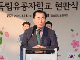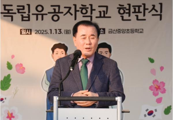 충남교육청은 1월 13일 금산중앙초등학교에서 교육공동체를 대상으로 독립유공자학교 현판식을 개최했다고 밝혔다.