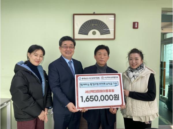 충청남도서산교육지원청은 16일 서산학부모회협의회(회장 서민정) 임원과 함께 바자회 수익금 전액을 학대피해아동쉼터에 기부했다. 이를 통해 지역사회에 따뜻한 나눔 문화를 확산하고, 어려운 학생들에게 희망과 응원의 메시지를 전했다.