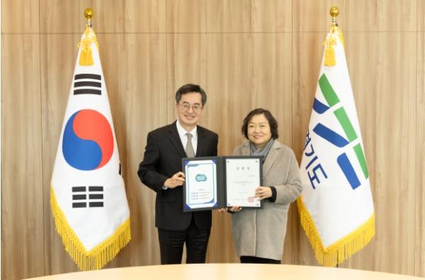 김동연 경기도지사는 17일 집무실에서 경기도경제과학진흥원 신임 이사장에 인재근 전 국회의원을 임명했다.