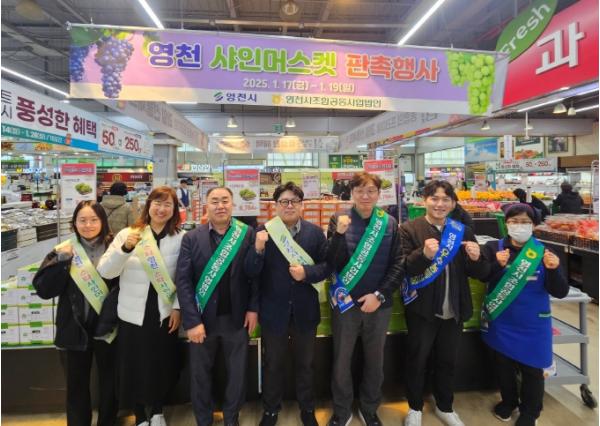 영천시와 영천시조합공동사업법인은 설 연휴를 앞두고 지난 17일부터 19일까지 3일간 울산광역시 북구 하나로마트 농협울산유통센터에서 영천 샤인머스켓 깜짝 판매행사를 진행했다.