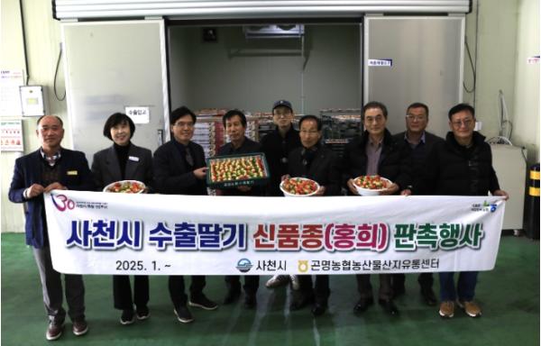 24일 사천시에 따르면 곤명딸기 수출농단 ‘다원’은 지난 23일 곤명농협농산물산지유통센터에서 신품종 딸기 ‘홍희’의 싱가포르 수출 기념식을 가졌다.