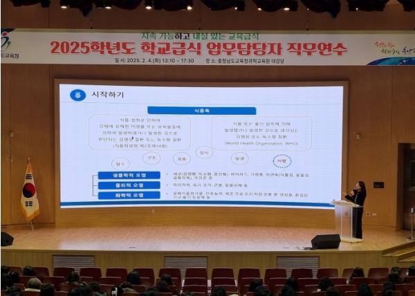 충남교육청은 2월 4일과 6일 이틀에 걸쳐 충청남도교육청과학교육원 대강당에서 ‘2025년 상반기 학교급식 관계자 직무연수’를 개최하여, 2025학년도 학교급식의 전반적인 정책설명과 급식 우수 사례를 공유하는 자리를 마련했다고 밝혔다.