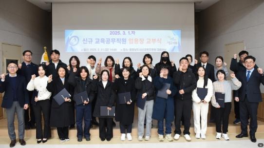 충청남도서산교육지원청은 지난 21일 서산교육지원청 대회의실에서 2025년 3월 1일 자 신규 교육공무직원 임용장 교부식과 정년퇴직자 송공패 수여식을 개최했다.