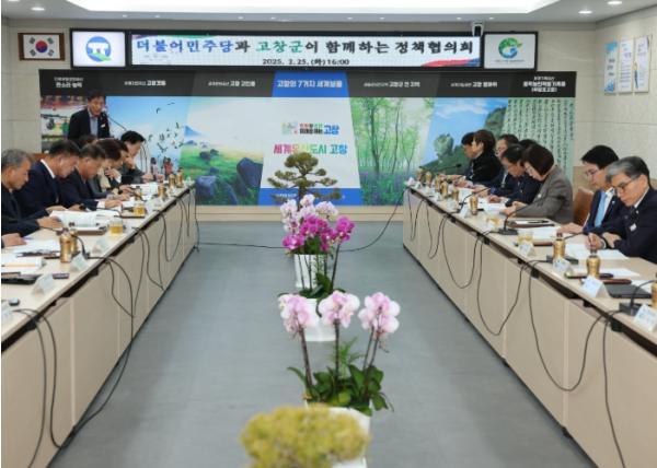 전북 고창군과 더불어민주당 지역위원회가 2025년 첫 정책협의회를 갖고 현안 해결과 국가예산 확보에 적극 협력하기로 했다.