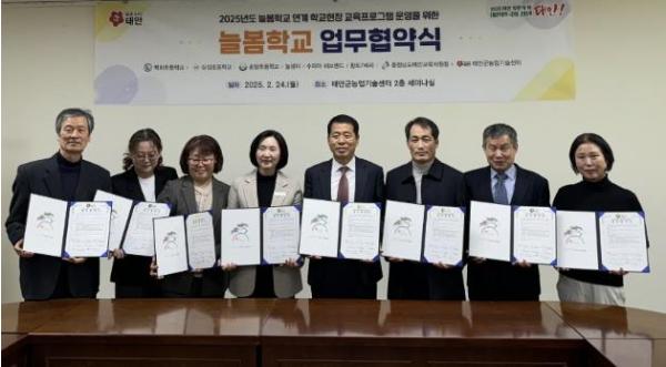 충청남도태안교육지원청은 지난 24일 태안군농업기술센터 세미나실에서 태안군농업기술센터와 “농촌체험농장 연계 늘봄학교 협약”을 맺었다.