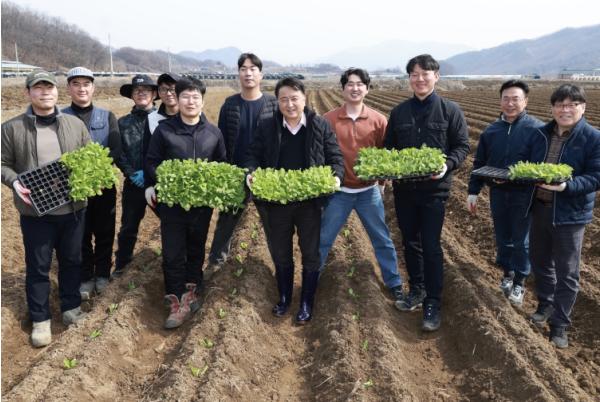충청북도는 10일 괴산군 불정면에서 청년농과 못난이 김치 업체와의 봄배추 계약재배에 따른 첫 번째 봄배추 식재를 진행했다.