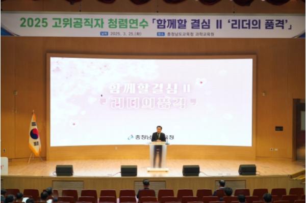 충남교육청의 이번 청렴콘서트는 3월 24일부터 26일까지 도교육청 대강당 등에서 본청 부서장과 교육장 등 67명과 학교장 740명이 참석한 가운데 실시했고, 2025 고위공직자 청렴 연수를 겸하여 개최했다.