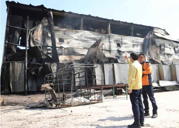 김동연 지사는 이날 오전 안동시 임하면에서 민가 등 화재피해 현장을 확인한 뒤 이재민 대피소인 임하면 복지회관과 안동서부초등학교를 찾아 이재민을 위로했다. 김 지사는 붉은색 앞치마를 두르고 임하면 복지회관에서 배식 봉사도 진행했다.