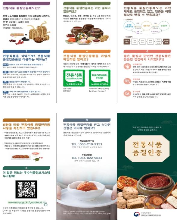전통식품 품질인증 제도는 국산 농수산물을 주원료 또는 주재료로 하여 예로부터 전승되어 오는 원리에 따라 제조·가공·조리되어 우리 고유의 맛·향·색을 내는 전통식품을 국가가 인증해 주는 제도이다. 품질인증을 받은 전통식품은 주기적인 품질 및 위생·안전 점검으로 일반 전통식품에 비해 더욱 신뢰할 수 있다.