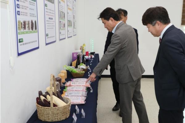 이후, 김 지사는 옥수수 품종 육성 현황을 보고 받은 뒤, 종자 저장‧가공시설을 둘러보며 연구진과 소통의 시간을 가졌다.