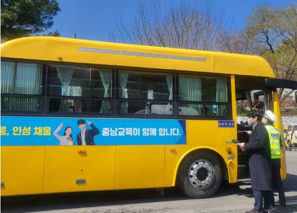충청남도서산교육지원청은 지난 15일 오전 서산종합운동장에서 서산경찰서, 한국교통안전공단과 함께 어린이 통학차량 합동 안전점검을 실시했다.