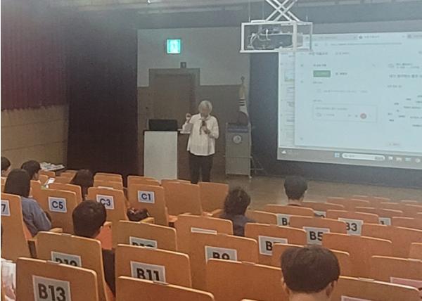 이날 배움자리는 △좋은 수업이란? △수업 공개의 실제 △행정사항 안내 등으로 구성됐다. 학교 현장에서 다양한 수업을 접하고, 수업 나눔을 펼치고 있는 송간초 한인숙 수석교사의 강연을 통해 학생중심·배움중심 수업의 사례와 개선 방안에 대한 깊이 있는 배움이 진행됐다.