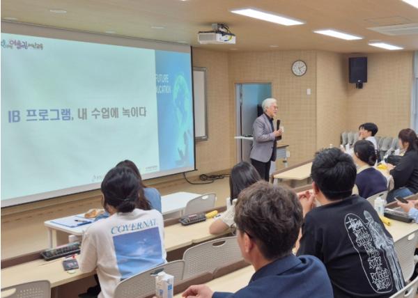 첫 회 연수는 전 표선고 교장이자 인하대 교수인 임영구 교수가 IB 교육의 기본 철학과 수업 설계의 핵심 요소를 중심으로, IB 교육과정에 대한 이해, 수업 설계 사례 공유, 질의응답 등의 내용으로 강연했다. 현장에 참석한 교사들은 실질적인 도움이 됐다며 높은 만족도를 나타냈다.