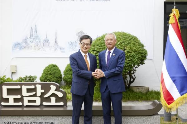 김동연 경기도지사는 15일 도담소에서 피팟 라차낏쁘라칸(Phiphat Ratchakitprakarn) 태국 노동부 장관과 만나 불확실성이 고조된 국제정세 속 경기도의 주요 무역 파트너이자 아세안의 중심인 태국과 협력 강화를 논의했다.