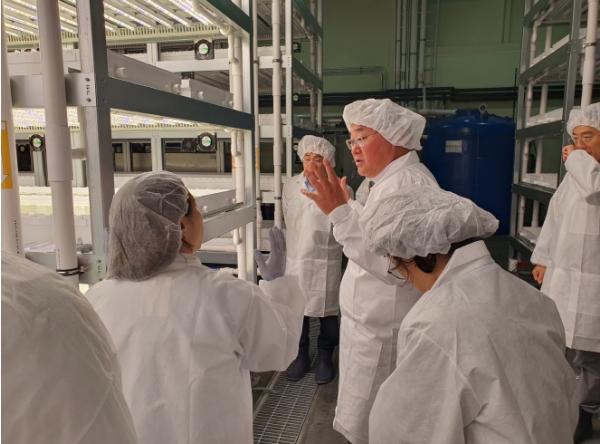 이날 김 부지사는 관계자로부터 스마트팜 및 수직농장 시설 조성 상황과 운영 준비에 대한 보고를 받은 뒤, 로메인·부추 등 시험 재배 작물이 자라고 있는 재배실을 둘러보며 파종, 이식, 생육 등 농장 운영 전반에 대한 설명을 청취하고 직접 생육 상태도 점검했다.
