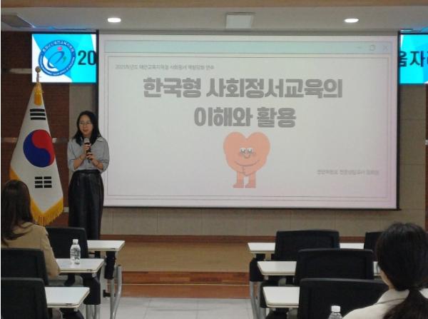 이번 연수는 천안 희망초등학교 정화영 전문상담교사(사회정서교육 핵심강사)를 위촉해, 2024년 학생들의 긍정적인 성장과 정신건강 증진을 위해 계발된 ‘한국형 사회정서 프로그램’을 학교 현장에서 활용할 수 있도록 마련됐다.