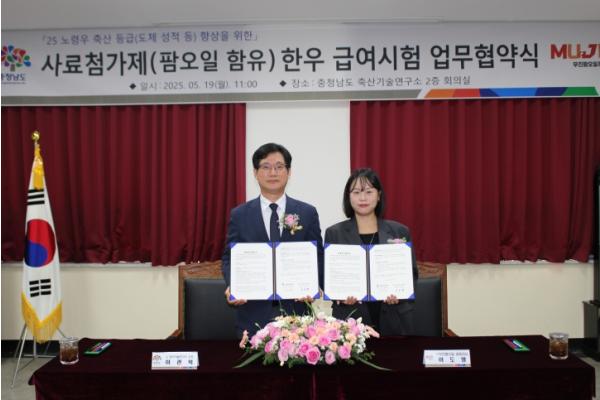 협약에 따라 양 기관은 팜오일이 함유된 첨가제를 활용해 노령우 단기 급여 효과를 위한 사전 예비 시험을 추진한다.