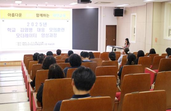 충청남도태안교육지원청은 지난 22일 청사 어울림홀에서 초·중·고등학교 감염병 업무 담당 교사 30명을 대상으로 ‘2025년 학교 감염병 위기대응 모의훈련 모더레이터 양성과정 연수’를 실시했다.