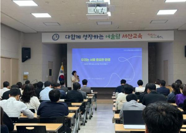 충청남도서산교육지원청은 2일, 대회의실에서 전 직원을 대상으로 4대 폭력 예방을 위한 통합교육을 실시했다.