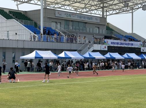 이번 대회는 학생들의 육상 경기력 향상을 위한 무대를 제공하고 학교체육 활성화를 위해 마련됐으며, 초등학교 12교 244명, 중학교 3교 24명 등 총 268명이 참가해, 트랙(60m, 100m, 200m, 600m, 800m, 400mR) 및 필드(포환던지기, 멀리뛰기) 종목으로 나눠 진행했다.