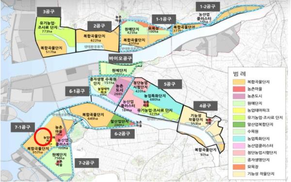 한국농어촌공사 김제 새만금사업단(사업단)은 새만금 7-1공구(800ha) 499헥타르(ha)에 밀, 콩, 고구마 등 수입 의존도가 높은 기초 식량작물을 전문 재배하는 새만금 복합곡물전문생산단지를 구축하고 있다. 농림축산식품부 ‘제2차 간척지의 농어업적 이용 종합계획’(2024~2043)에 따른 것이다.
