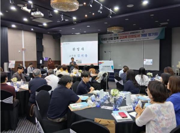 서산교육지원청은 지난 12일 서산 베니키아 호텔에서 '서산 교육발전특구 지역 차세대 산업 연계 특화 교과(목) 인정도서 개발 평가회'를 개최했다.